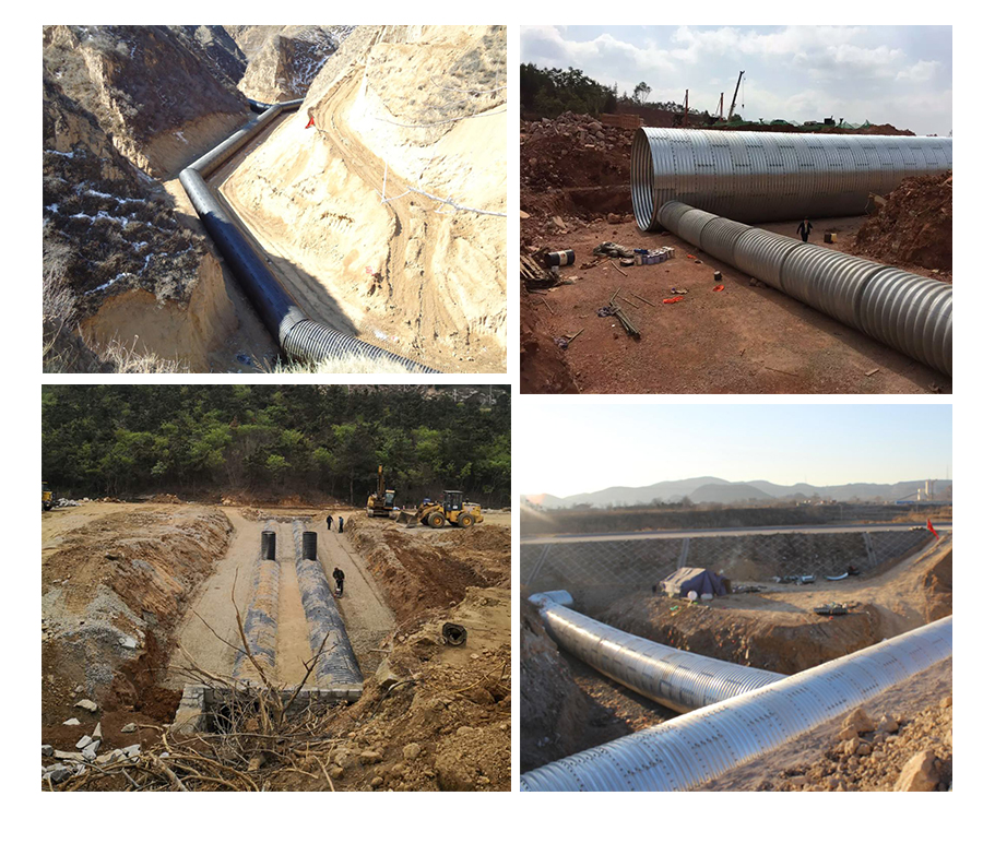 在山區(qū)雞爪大沖溝、市政彎曲河道等設(shè)置波紋鋼管排水涵時(shí),減少土方開(kāi)挖方量,二或多方向匯水,在工廠預(yù)制波紋鋼三通滿足排水要求。